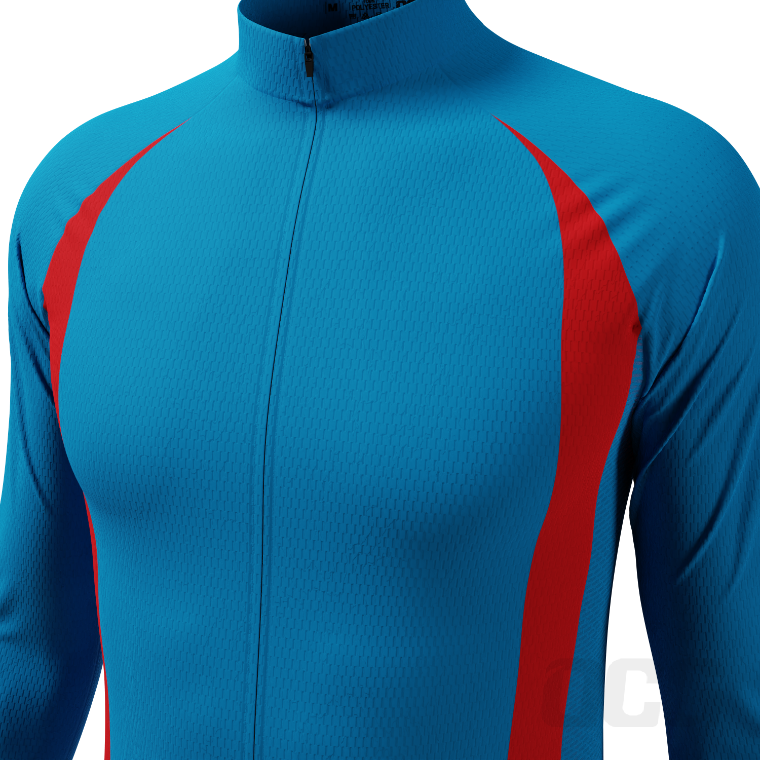 Men's Blue Red Stripe Long Sleeve Cycling Jersey Details