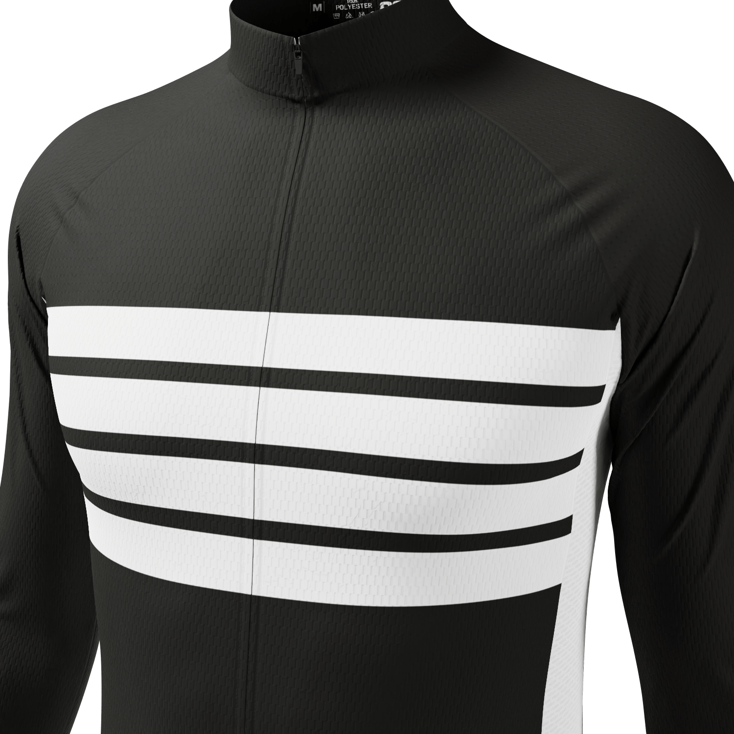 Men's Retro Four Stripe Black Long Sleeve Cycling Jersey Details