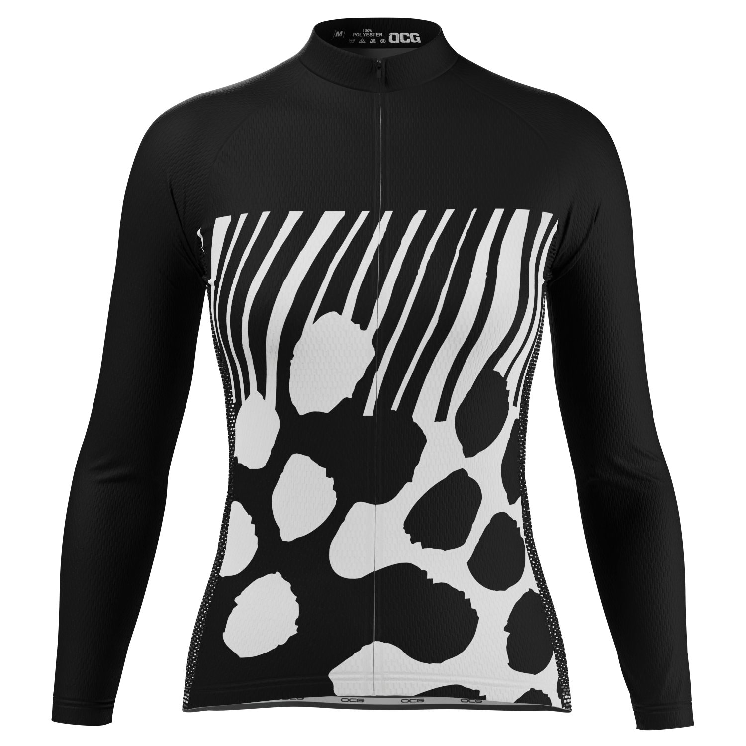 OCG and have come together to bring the Women's Big Leopard Spots & Stripes Long Sleeve Cycling Jersey to keep you warm and protected on your next ride.