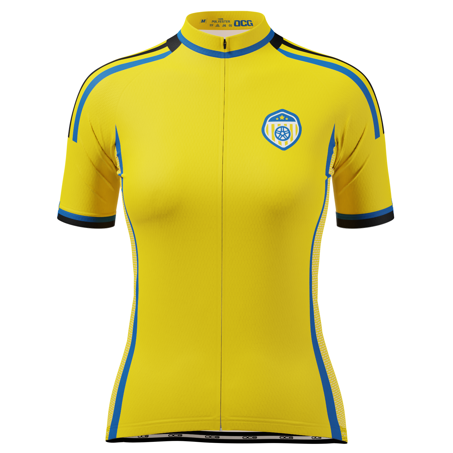 OCG presents the Women's Sweden Soccer Short Sleeve Cycling Jersey so you can roll up to your next ride in style and feel the comfort of a female cut jersey.